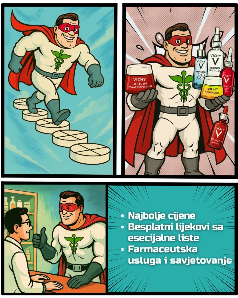 Pružiti profesionalnu, brzu i prijateljsku uslugu – online i uživo. Misija nam je biti vaša prva stanica za savjete, lijekove, dodatke ishrani i njegu zdravlja.